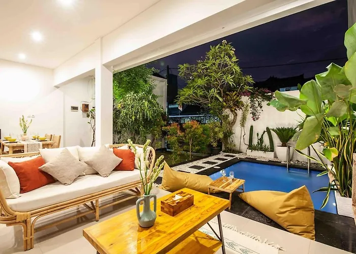 Maha Villas Central Canggu距离贝拉瓦海滩特别近,步行25分钟就可以到了。别墅靠近Pretty Poison。 Maha Villas Central Canggu设有私人游泳池,步行10分钟即可到坎古市中心。
